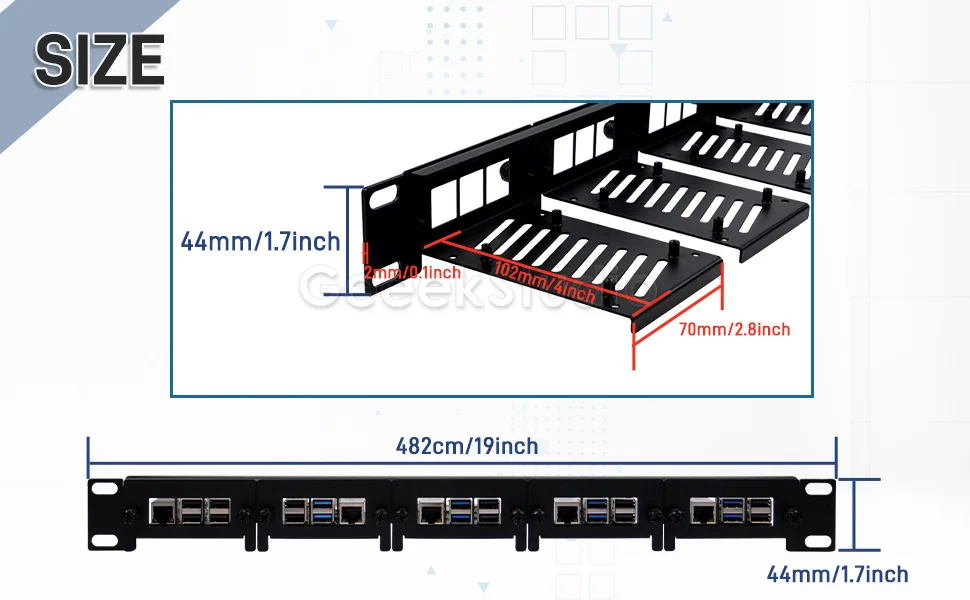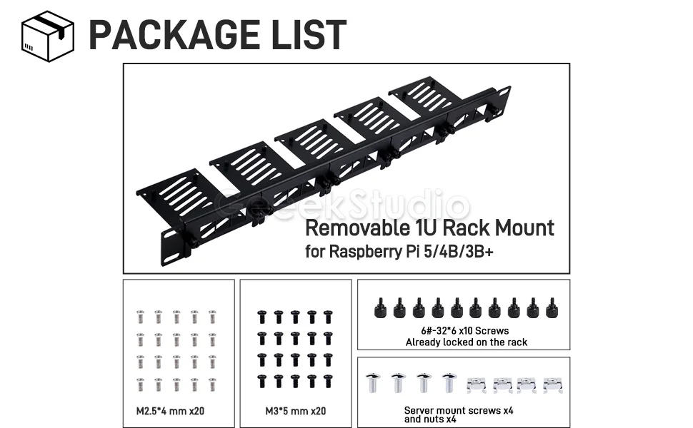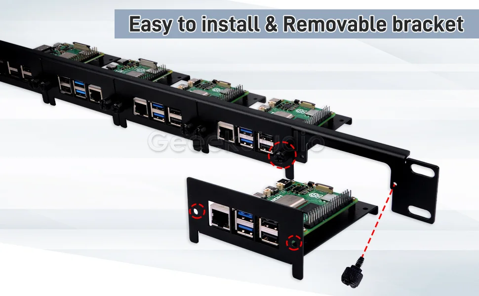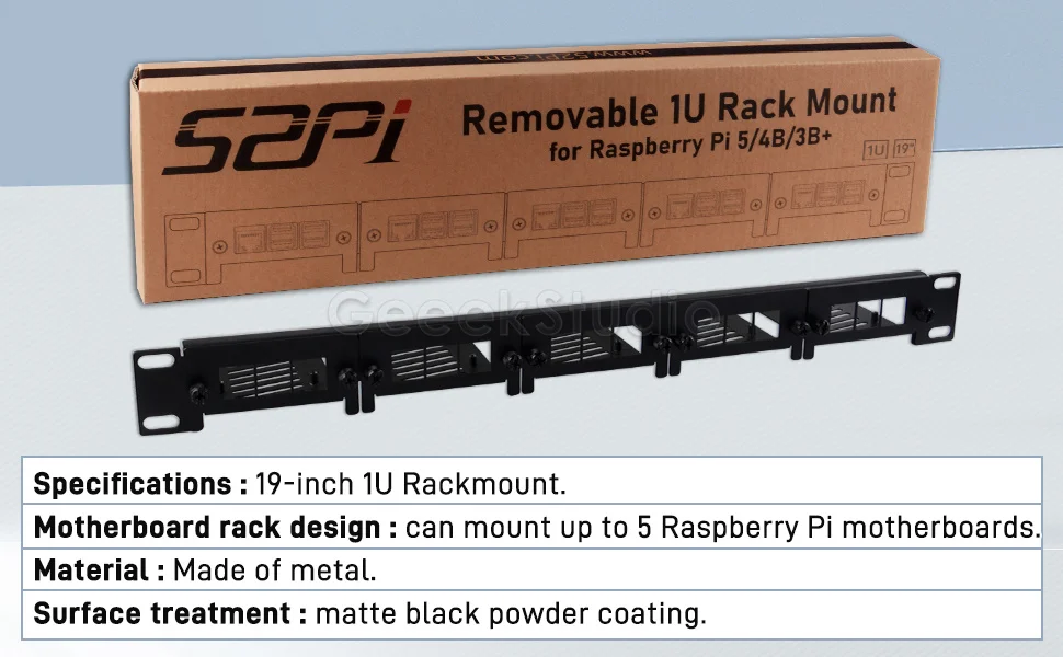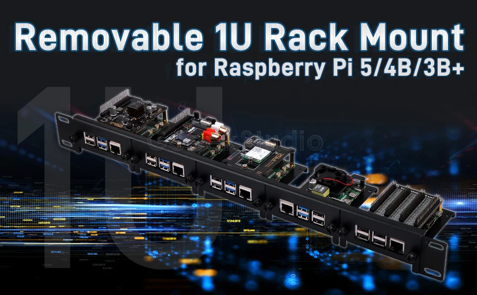 1U Rack Mount for Raspberry Pi 5/4B/3B+ Removable Steel Bracket 19 Inch 5 Slots