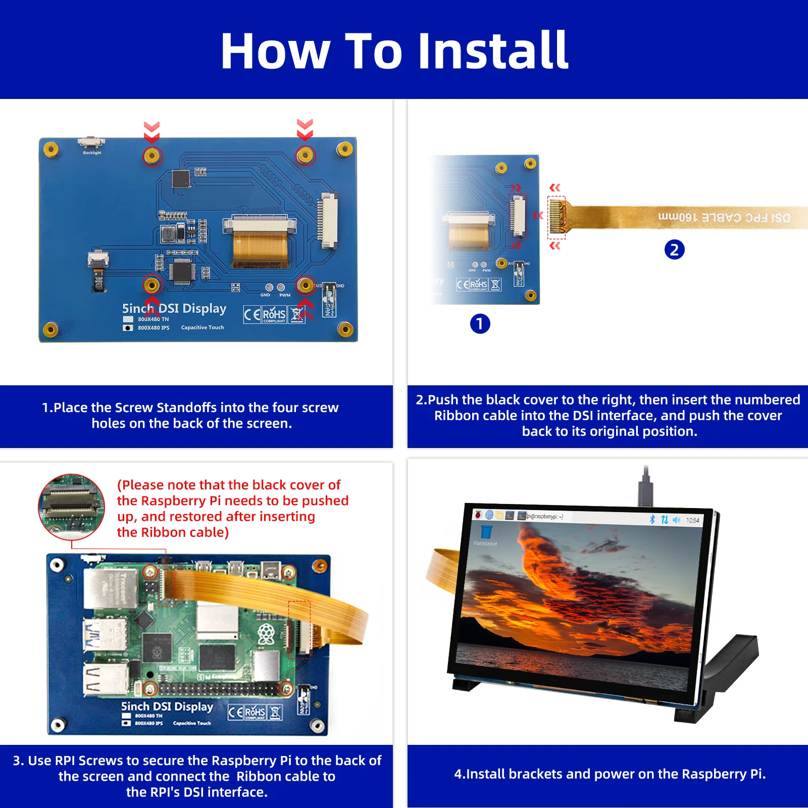 iPistBit 4.3/5/7 Inch DSI Touch Screen LCD Display Portable Capacitive Touchscreen Monitor 800x480 for Raspberry Pi 5 4 3 3B+ 2