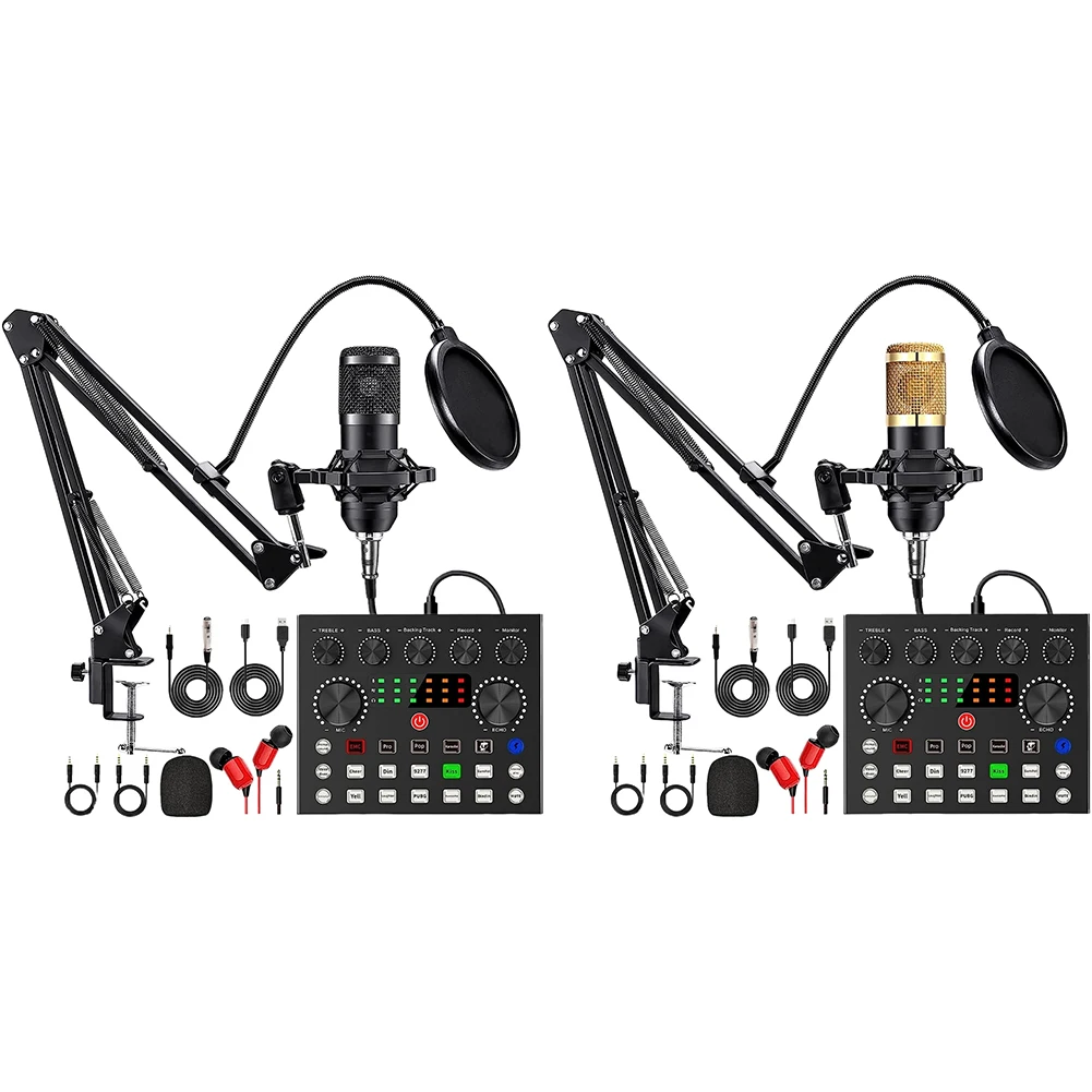 Podcast Equipment Bundle with BM800 Microphone and V8 Sound Card Podcast Equipment Metal Shock Mount Double-Layer Pop Filter Perfect for Podcasting Gaming Music Recording