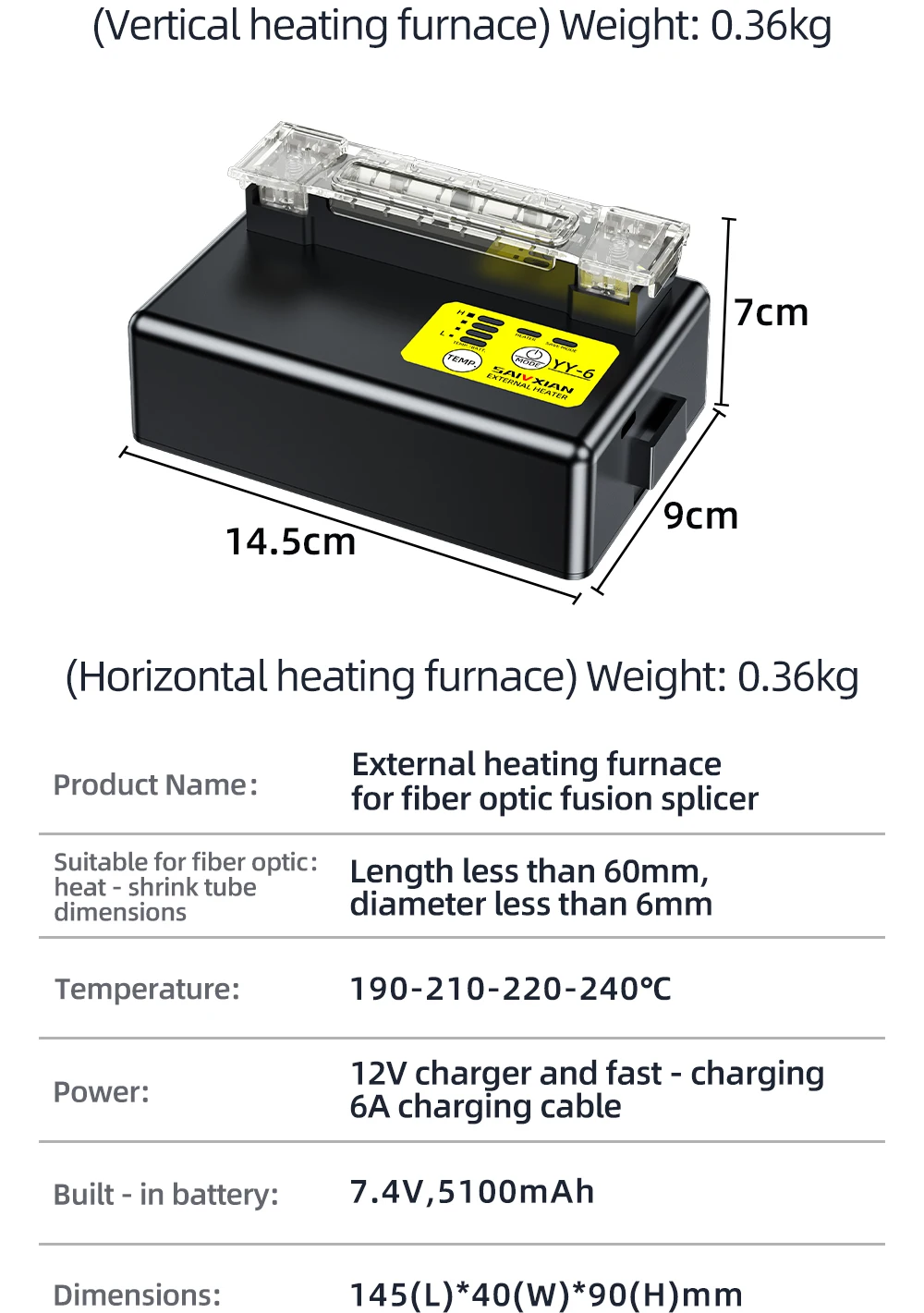 SAIVXIAN YY-6 Optical Fibre Fusion Splicer External Heating Furnace 300 Core Bare Fibre Single-core Heat Shrinkable Tube Heater
